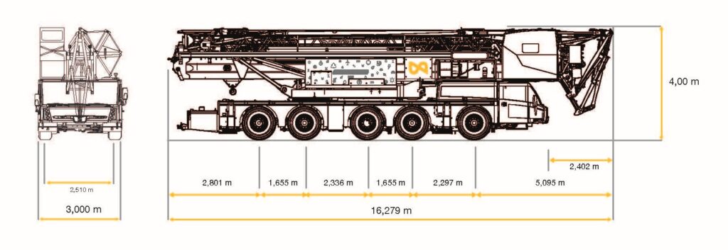 | Hauteur de levage maximale | 64.2 m (Configuration avec flèche articulée à 30°) |