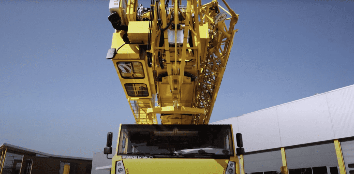 De 6-assige Spierings SK1265-AT6 eLift is niet alleen de grootste mobiele torenkraan ter wereld, maar ook een eerbetoon aan Tiny Spierings, medeoprichtster van Spierings Mobile Cranes. Dit model staat voor innovatie, kracht en gebruiksgemak gecombineerd in één kraan.