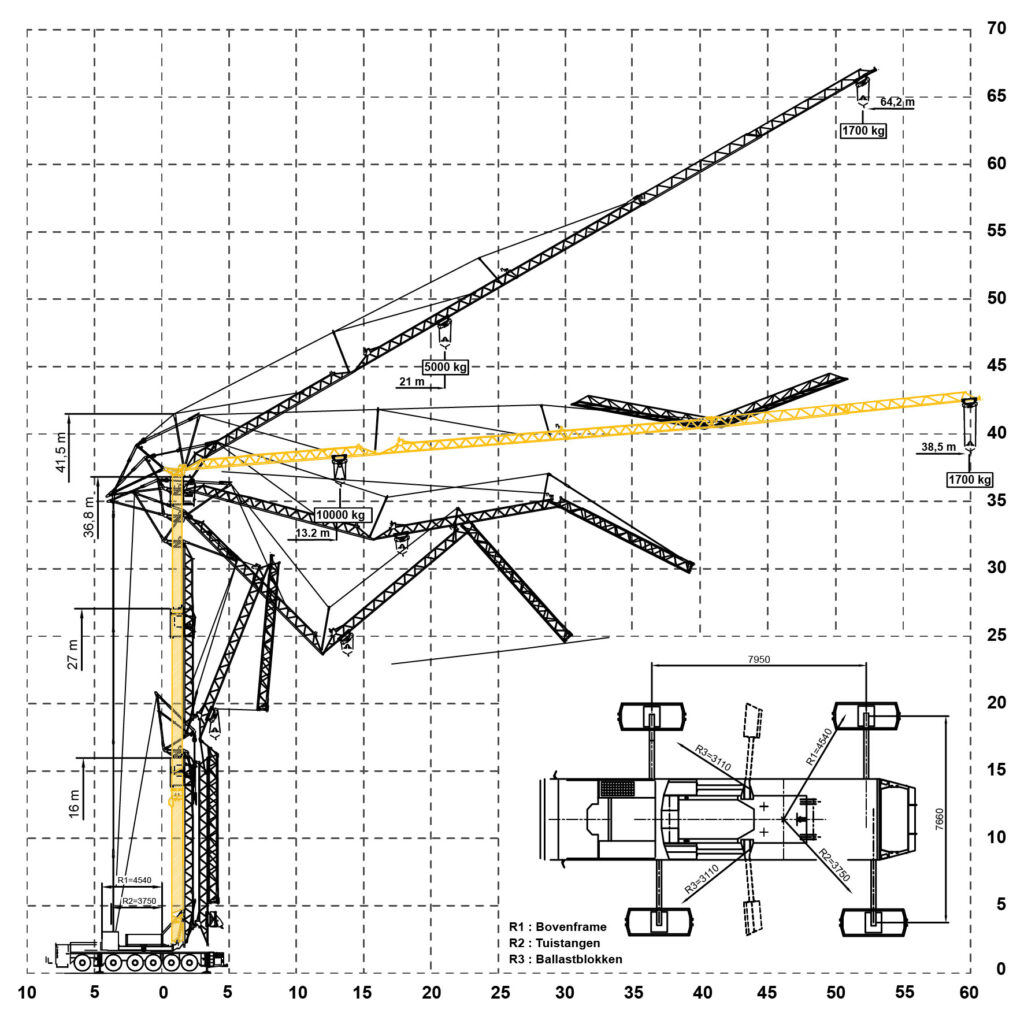 | Maximale last | 10.000 kg (tot op 13.2 m) |